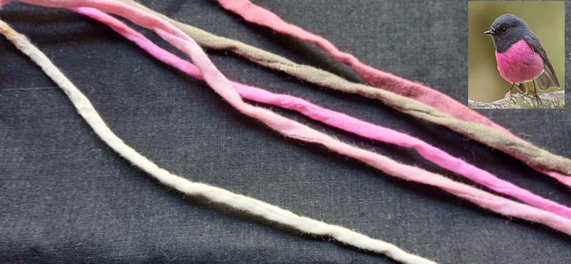5 Pastel Pink Polyester Cords in beautiful pastel pinks and brown colors of the bird, “Pink Robin”. Thin art silk fabric cord made with colorful polyester fabric. It can be used for jewelry making, for fabric cording, as yarn, for making Kumihimo braids, etc. You can machine wash these cords.