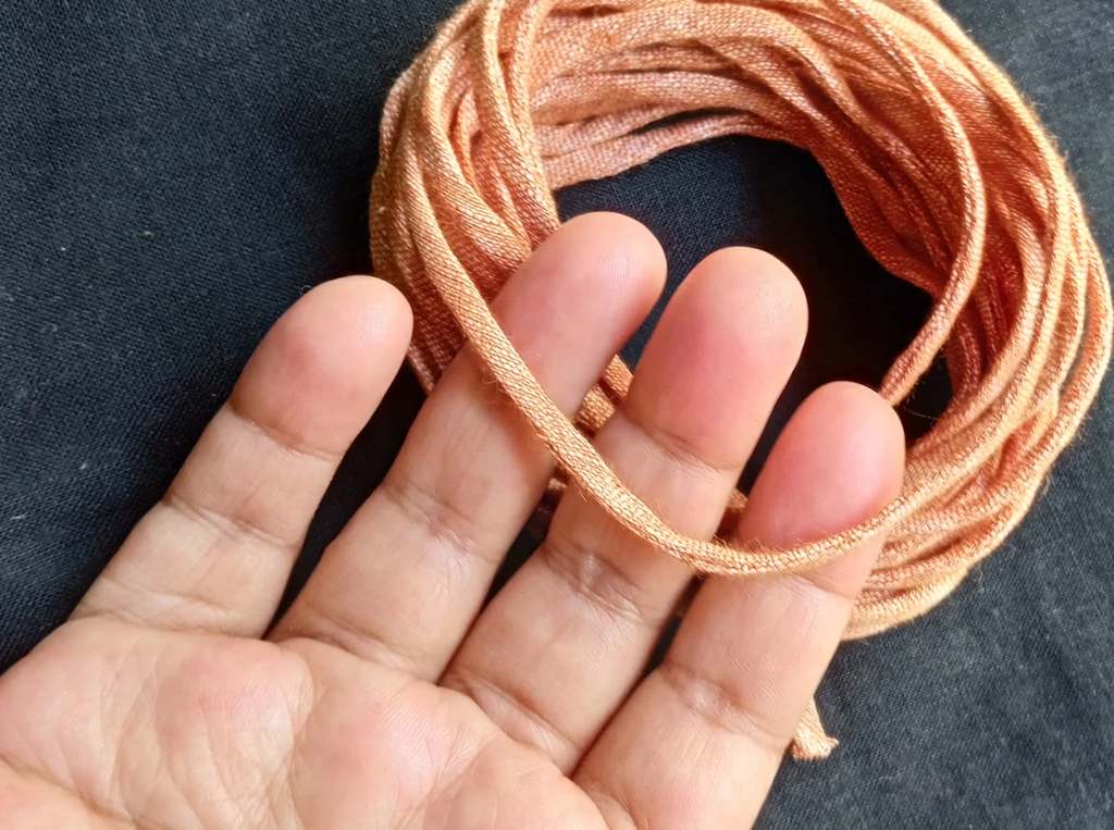 You will love this Brown Cotton Silk Cord! It is made with handwoven pure silk and cotton fabric. Machine stitched, bias cut cording with a nice finishing. It is oh!..so soft to touch and has a slight halo to it!