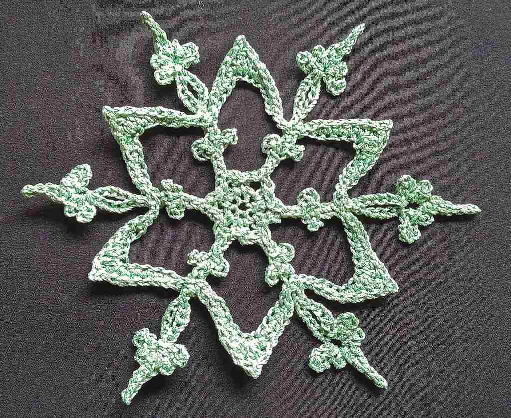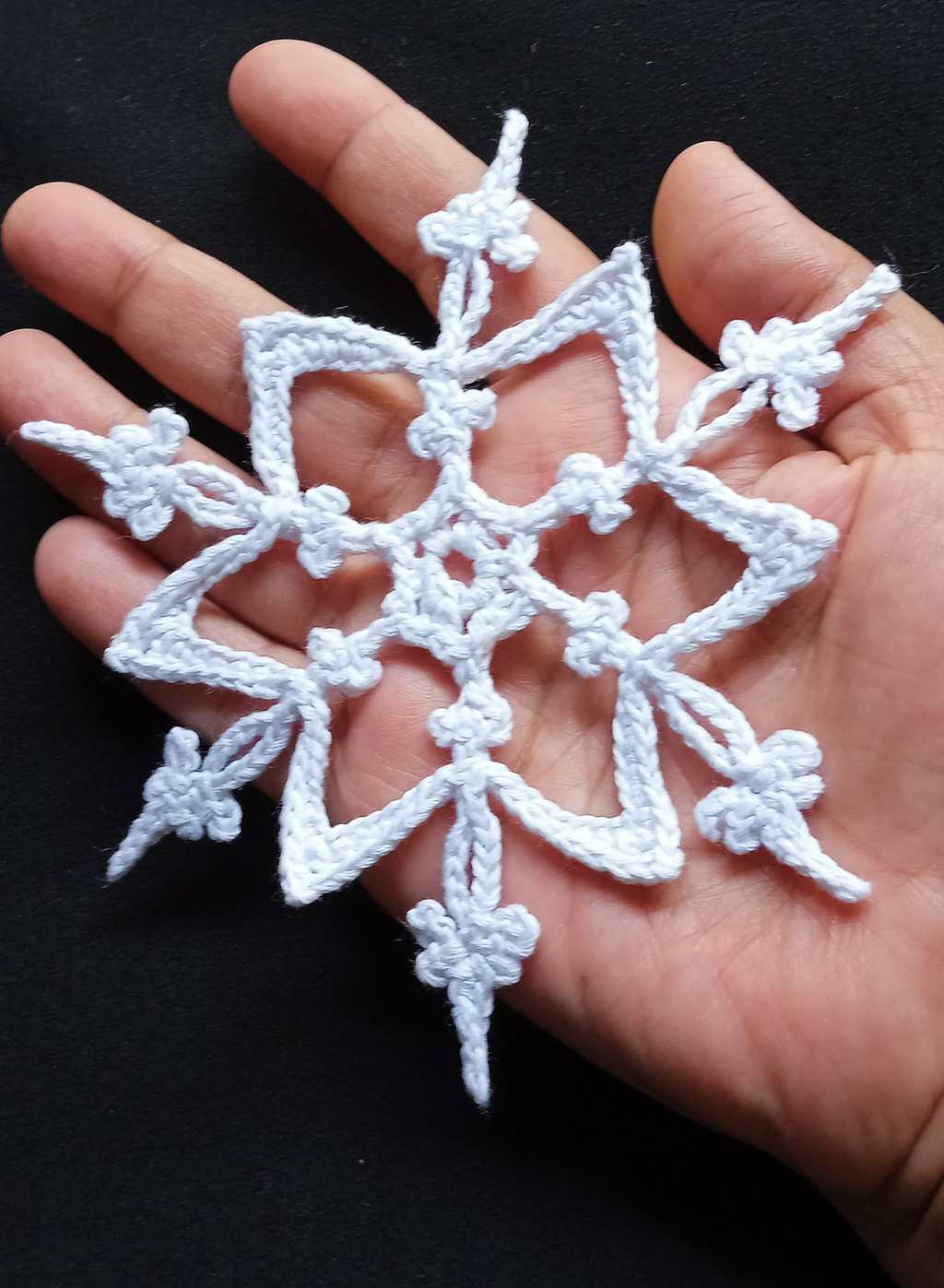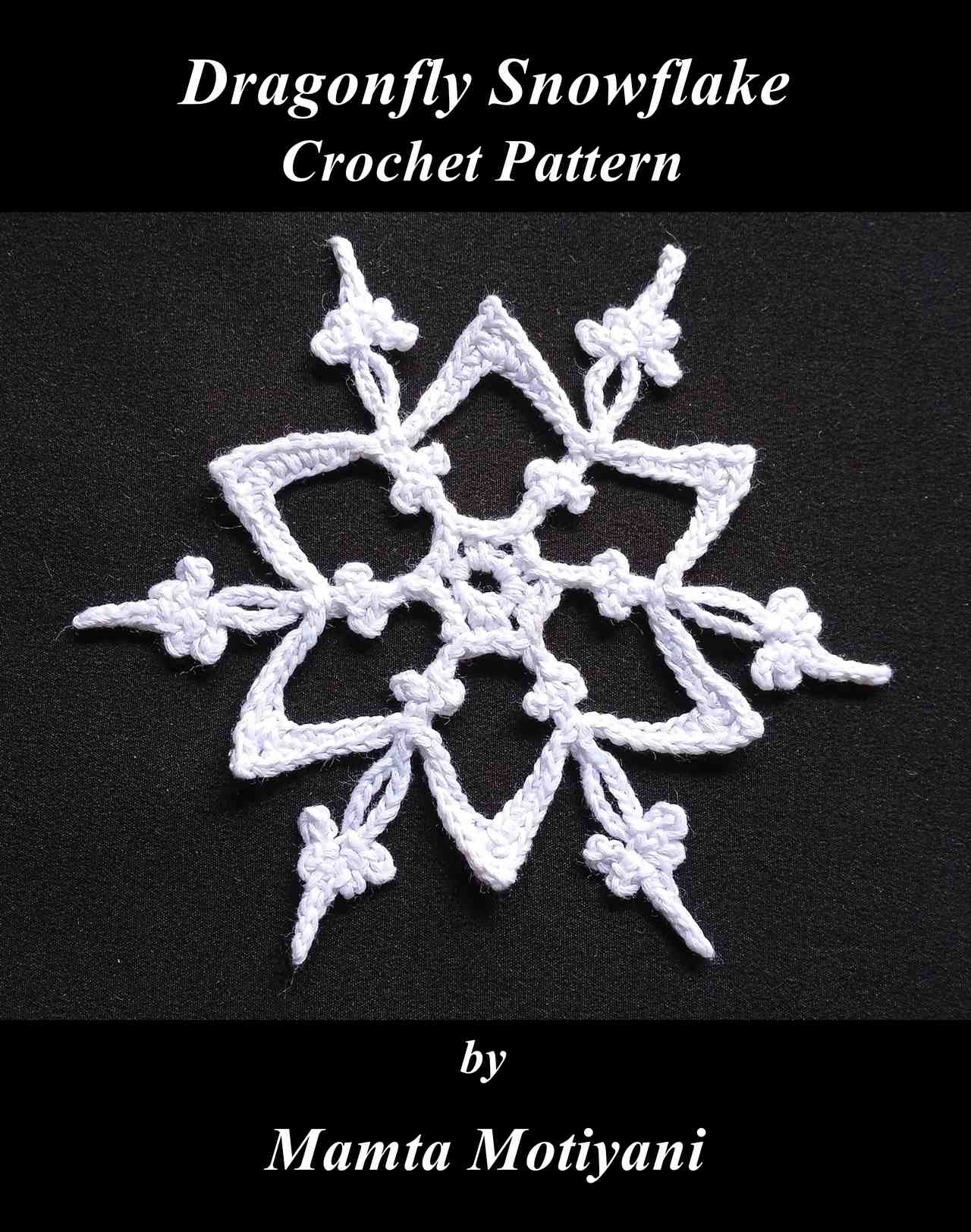 “Dragonfly Snowflake Applique” is a crochet pattern to make a large snowflake applique. This snowflake pattern is inspired by a real snowflake. I saw a picture of a magnified snowflake and decided to convert this beauty of nature into a similar looking crochet pattern.