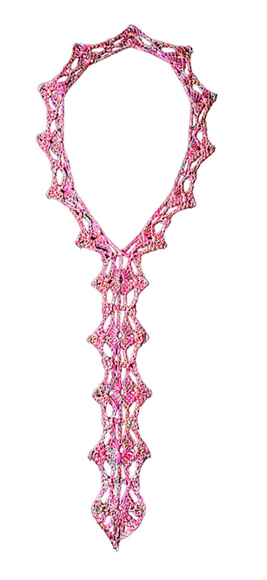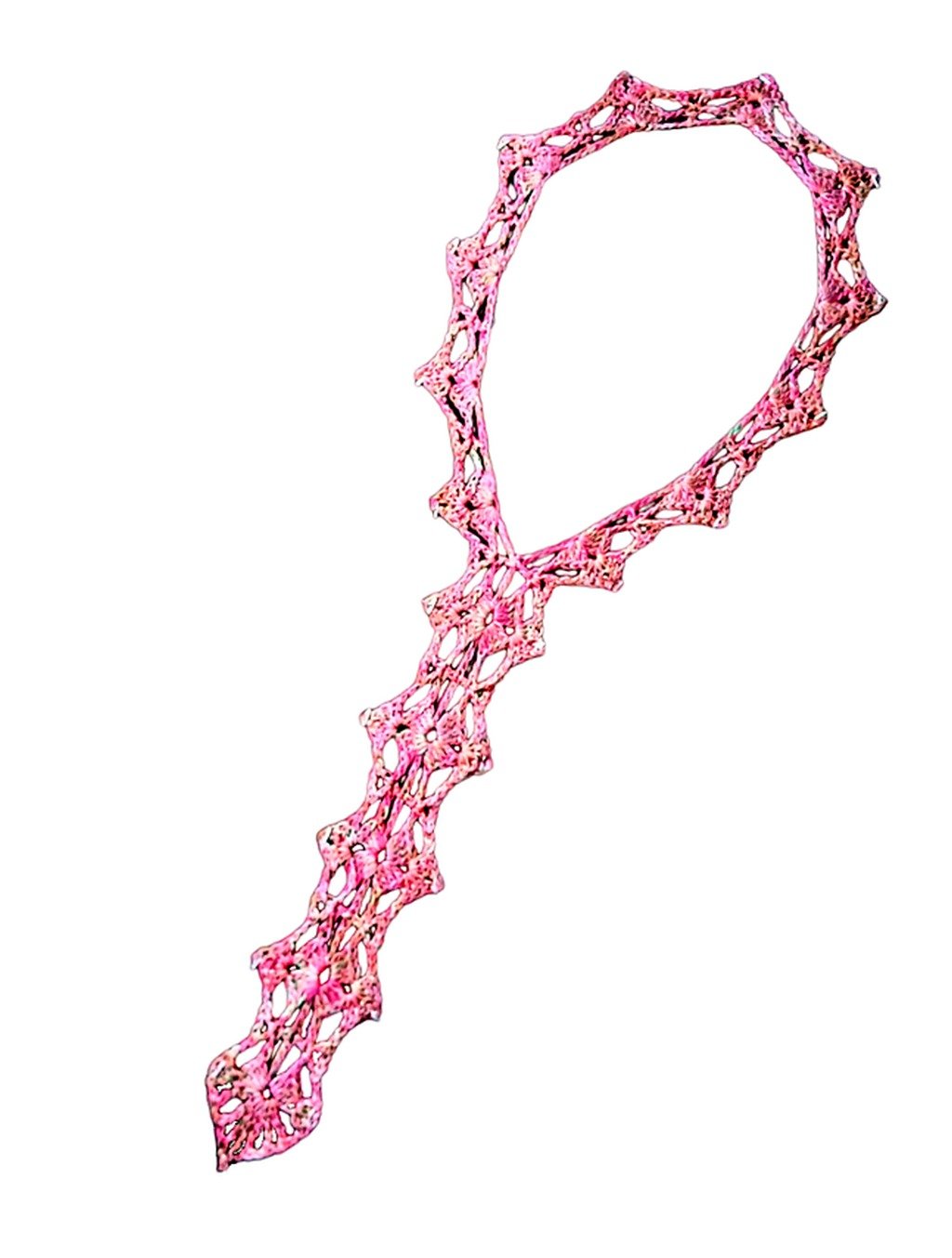 “Key to My Heart” is a kind of a lariat without a loop, a bit like a lanyard, a bit like a scarf, but none of them. It is more like a flowy necklace or a fancy lace tie which can be easily put over the head and displayed elegantly over your beautiful neck.