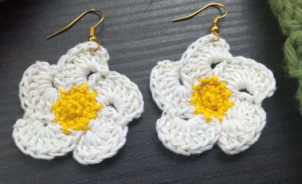 Suggested Yarns: I used a size 10 weight thread and size 1.75mm crochet steel hook to make these earrings. I used approximately 6.5 yards of embroidery floss for the petals and 1.5 yards of embroidery floss for the center.